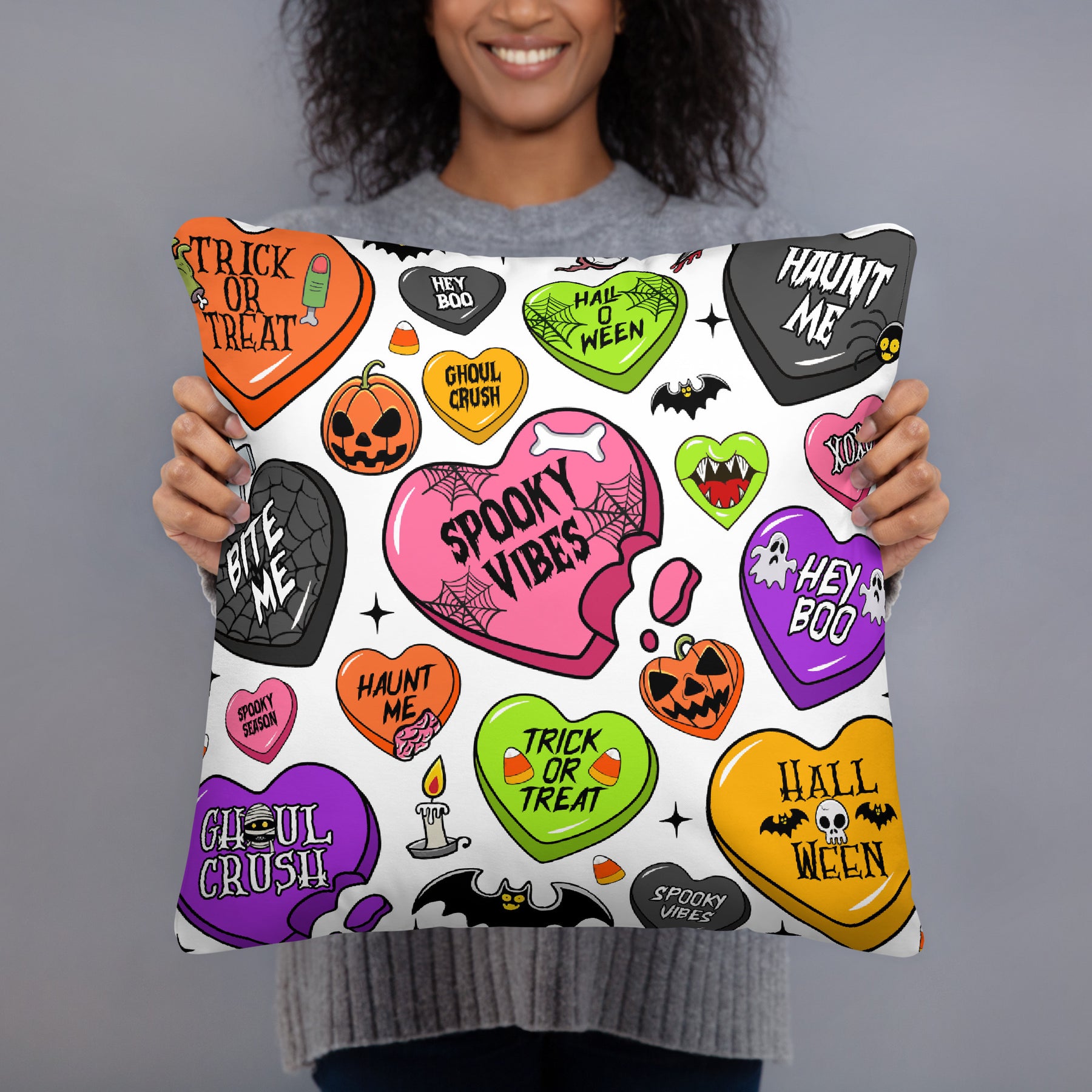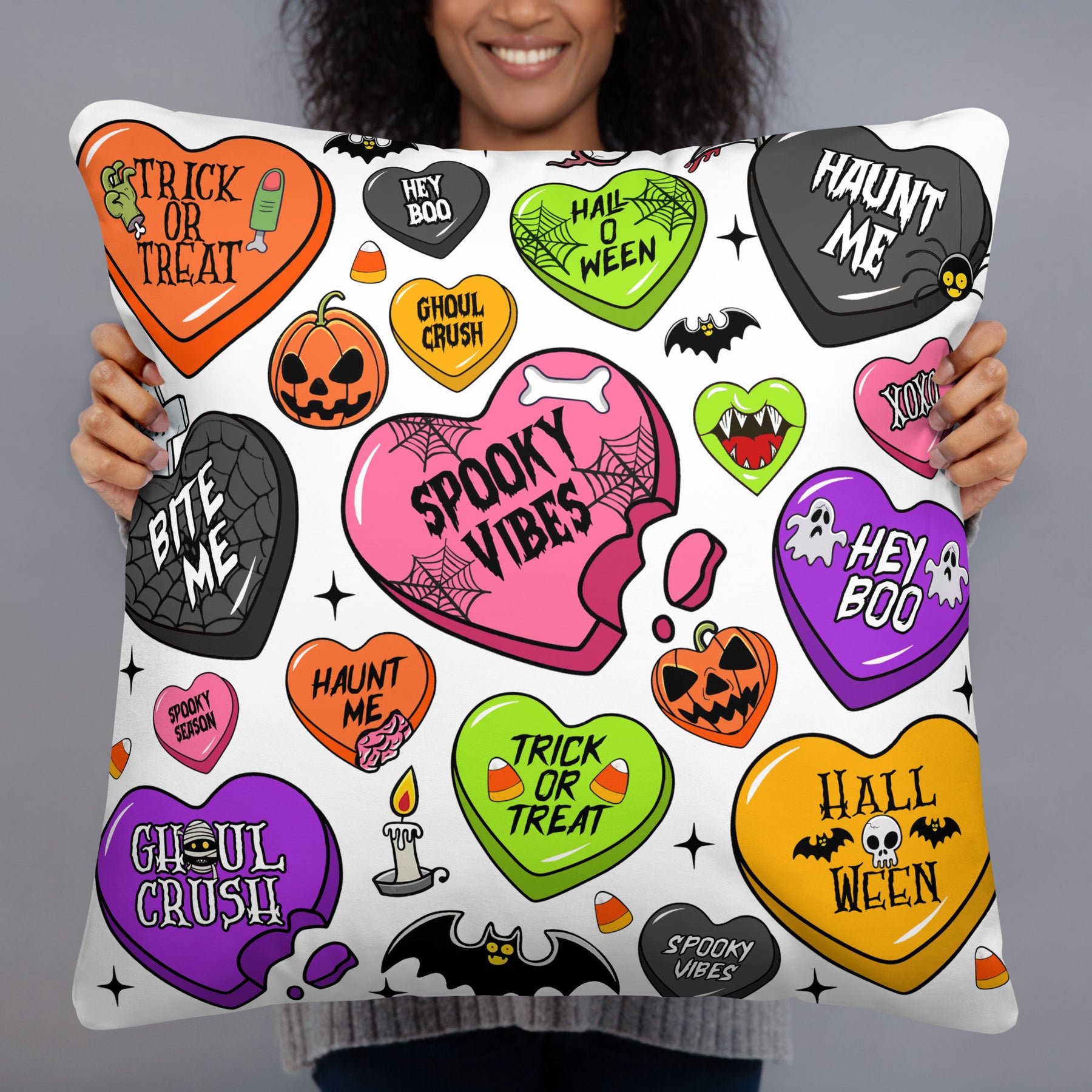 Basic Pillow Halloween Candy HeartsA strategically placed accent can bring the whole room to life, and this pillow is just what you need to do that. What&