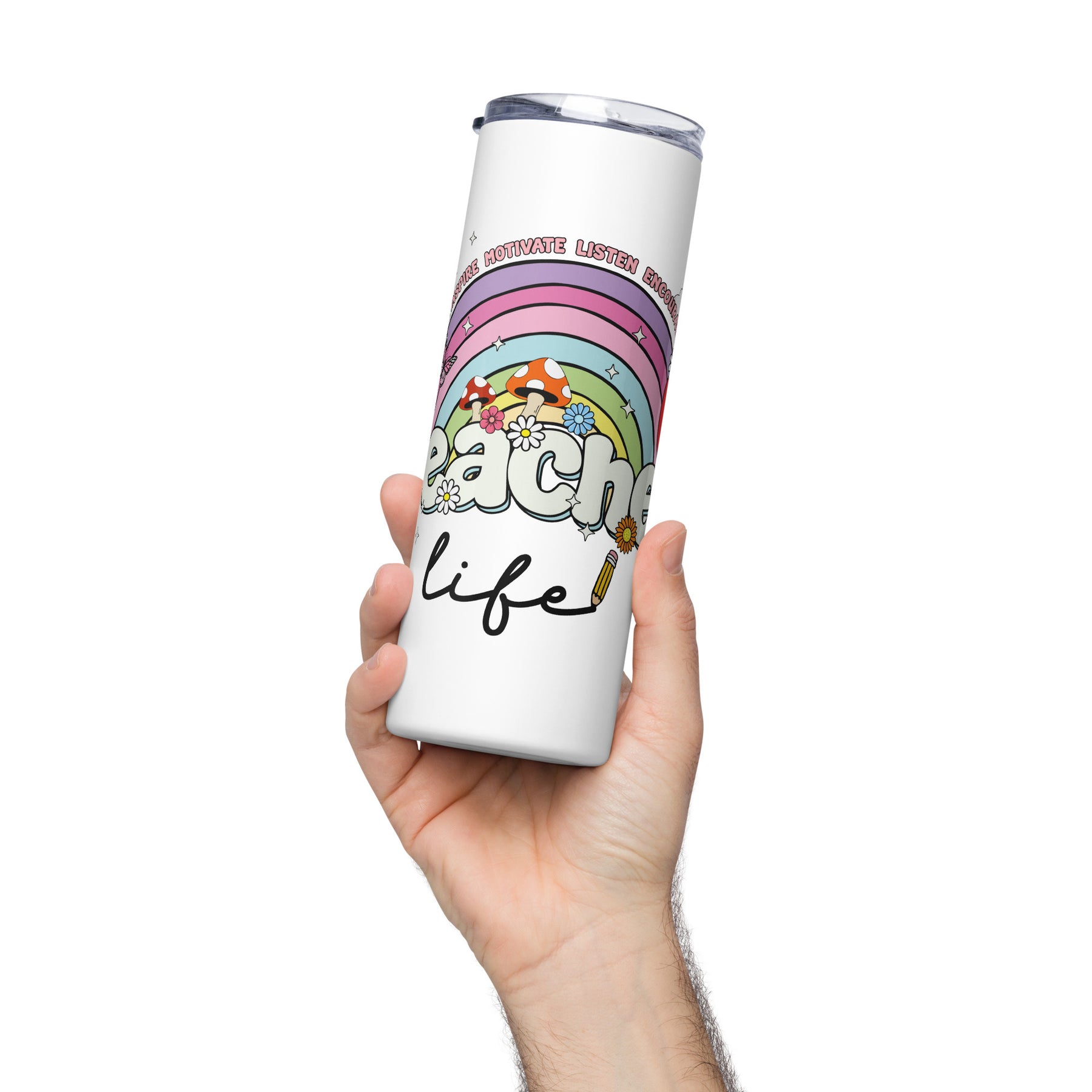 Teacher Life Stainless Steel 20oz Skinny TumblerEnjoy hot or cold drinks on the go with this stylish stainless steel tumbler! This reusable tumbler with a metal straw is a perfect combo for hot or cold drinks at aTeacher Life Stainless Steel 20oz Skinny Tumbler