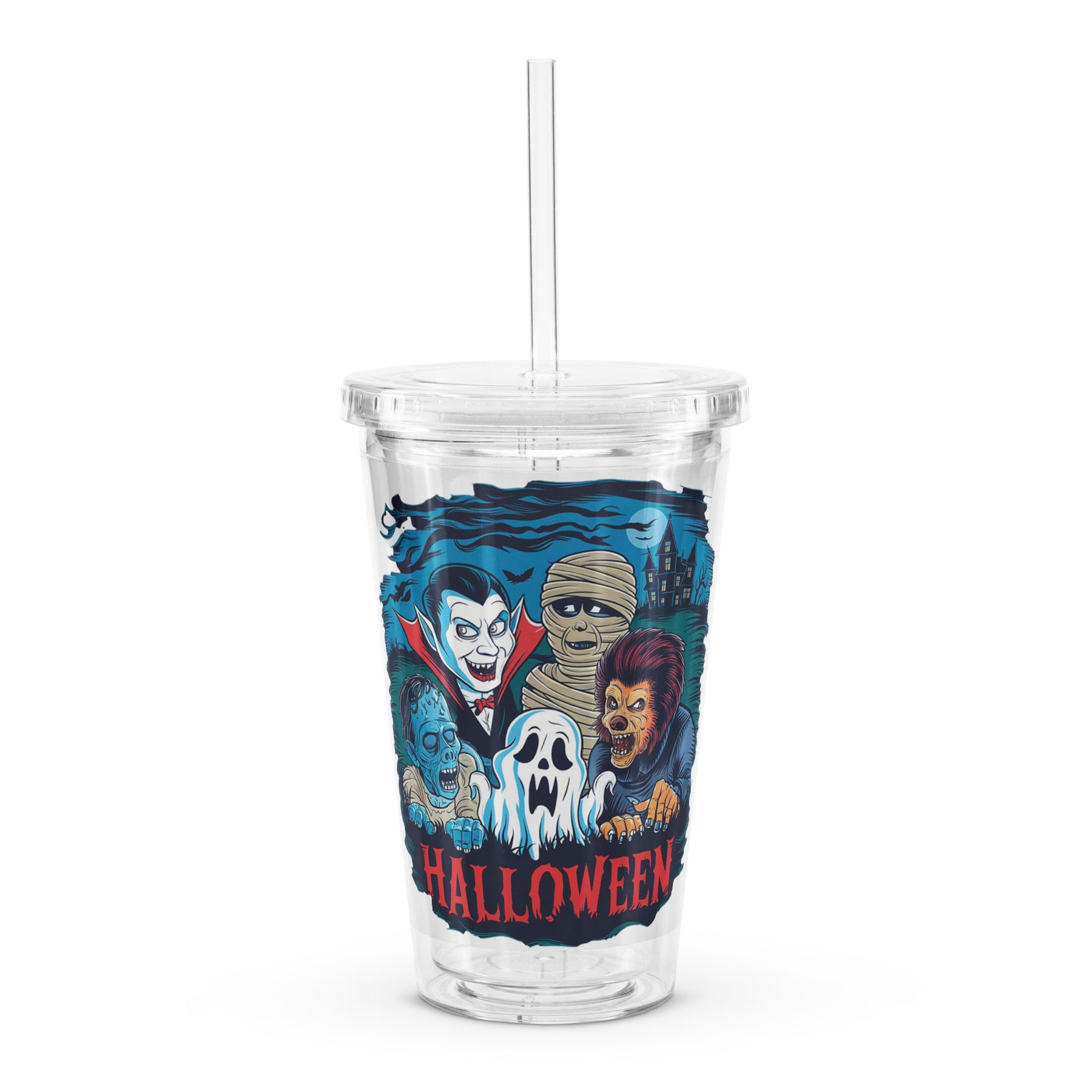 • Comes with a plastic straw and screw-on lid